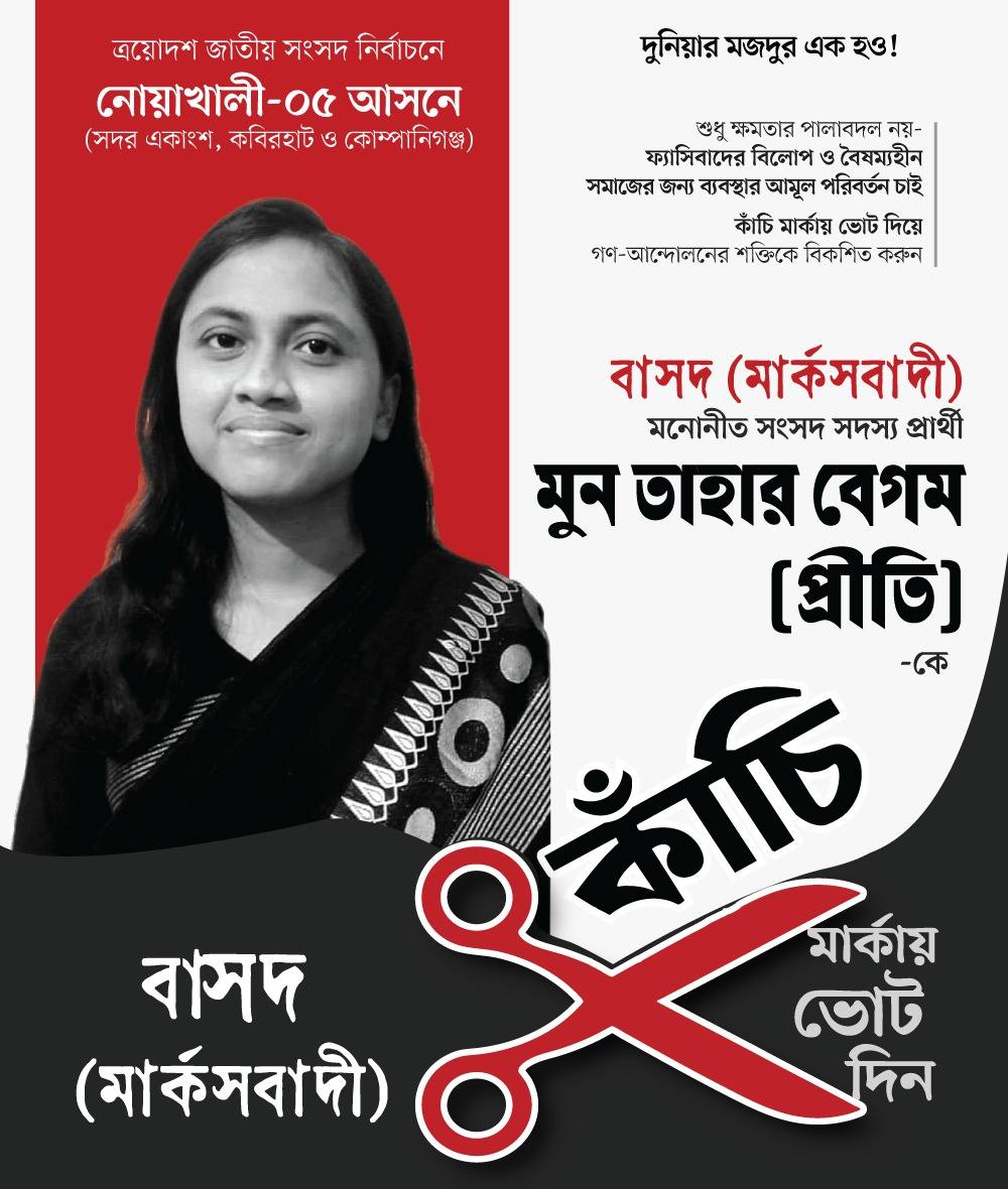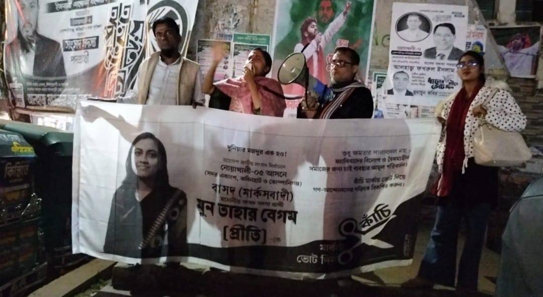 তিনি বাংলাদেশের সমাজতান্ত্রিক দল (বাসদ – মার্কসবাদী) মনোনীত প্রার্থী হিসেবে একাদশ জাতীয় সংসদ নির্বাচনে নোয়াখালী–৫ আসন (কবিরহাট ও কোম্পানীগঞ্জ উপজেলা) থেকে প্রতিদ্বন্দ্বিতা করছেন।